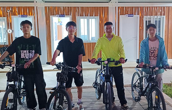 楊銀龍、張興奇、陳學(xué)海、陳松四位小伙相聚東三環(huán)閉合工程,一人一輛自行車,一人一項技能,一人一個故事,在項目上形成一道風(fēng)景線。忙時四人騎車一起去項目現(xiàn)場比拼工程質(zhì)量和進(jìn)度,閑時四人騎車一起去環(huán)湖東路的“秘密花園”放松心情比拼體能。一支年輕的隊伍,一支善戰(zhàn)的隊伍,一顆進(jìn)取的心,是新時代青年該有的面貌。他們仰望星空,卻不忘來時的路,他們精誠協(xié)作,勢必把項目干好!