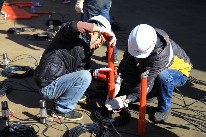 “15MPA、18MPA、21MPA……”2013年1月17日,云南大力神鋼結(jié)構(gòu)廠區(qū)內(nèi)傳來(lái)了一個(gè)儀器讀數(shù)的聲音,一群五建人雙眼緊盯著一個(gè)輪扣架體,神情緊張卻又充滿(mǎn)期盼, 600KN壓力試驗(yàn)機(jī)儀表指針不停地的轉(zhuǎn)動(dòng)著,“砰”的一聲,儀表指針飄過(guò)24MPA旋即回到零位,場(chǎng)地上的人好似卸掉重負(fù)一般歡欣起來(lái):“輪扣壓力試驗(yàn)成功了!”