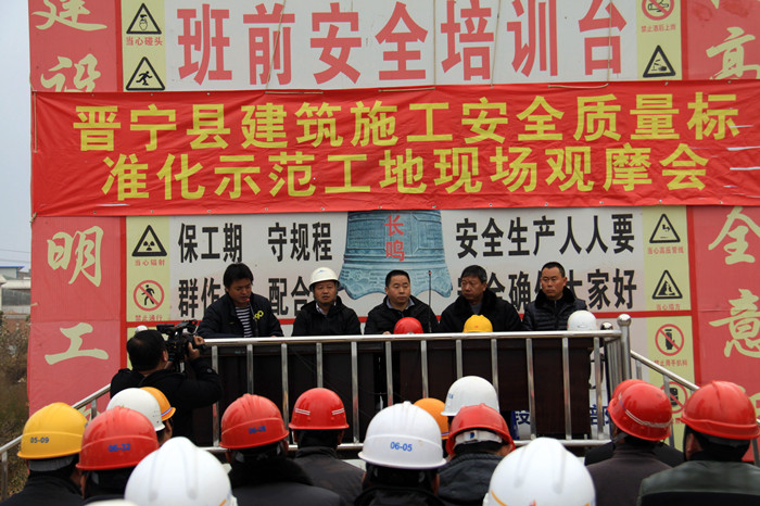 建設(shè)方領(lǐng)導(dǎo)在現(xiàn)場(chǎng)會(huì)上深情的回顧了云南建工與晉寧人民的深厚感情,表示作為晉寧人民的好伙伴,云南建工始終以最高的質(zhì)量標(biāo)準(zhǔn)保質(zhì)量,最安全的安全標(biāo)準(zhǔn)保安全,精心組織,認(rèn)真完成施工。質(zhì)檢站領(lǐng)導(dǎo)充分肯定并贊揚(yáng)了安企居住區(qū)(第四標(biāo)段)項(xiàng)目的一系列安全防范措施,并希望各施工單位認(rèn)真觀摩、虛心學(xué)習(xí),以看、學(xué)、比、趕、超的態(tài)度,提高在建項(xiàng)目質(zhì)量。