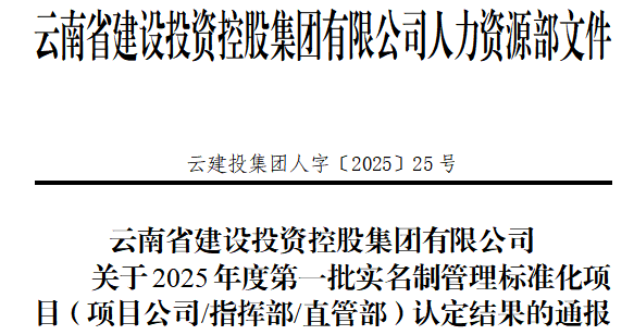 近日,集團通報了2025年度第一批建筑工人實名制管理標準化項目(項目公司/指揮部/直管部)認定結(jié)果,公司承建的5個項目成功通過集團實名制管理標準化項目認定,分別是第一直管部保山某項目、第二直管部云南農(nóng)業(yè)大學學生食堂(稷香園)建設(shè)項目、第七直管部五華區(qū)數(shù)字經(jīng)濟產(chǎn)業(yè)園西北新城園區(qū)項目、第八直管部文山職業(yè)技術(shù)學院產(chǎn)教融合實訓基地項目。自集團啟動建筑實名制管理標準化項目認定工作以來,公司以“六制一金一表”…