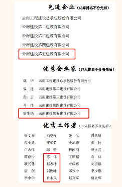 近日,昆明市建筑業(yè)協(xié)會公布2025年度評先創(chuàng)優(yōu)結果,公司榮膺2025年度昆明市建筑業(yè)“先進企業(yè)”,實現(xiàn)連續(xù)五年榮獲該項榮譽;公司黨委書記、董事長、迪慶公司董事唐生炳獲評昆明市建筑業(yè)“優(yōu)秀企業(yè)家”;同時,蘇偉、趙志坤、劉俊峰、肖本風4名職工獲評昆明市建筑業(yè)“優(yōu)秀工作者”。