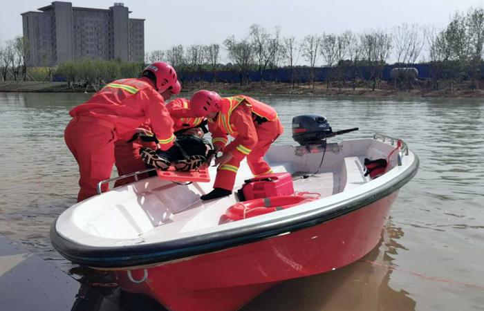 演練假設在印象廣場發(fā)生溺水事故,群眾發(fā)現(xiàn)后立即呼救并撥打相關(guān)救援電話,項目部現(xiàn)場安全員立即將該信息上報項目經(jīng)理,項目經(jīng)理迅速組織人員進行救援。消防隊救援人員到達后在距溺水者10多米處拋放救生圈,告知溺水者抓緊救生圈并保持冷靜,同時繞行至溺水者身邊全力將溺水者拖上快艇。到達岸邊后發(fā)現(xiàn)溺水者已失去意識并無法自主呼吸,救援人員立即對其進行心肺復蘇施救,及時挽回溺水者的生命。