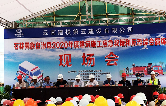 7月16日下午,由石林彝族自治縣人民政府、住房和城鄉(xiāng)建設(shè)局、公安局主辦,公司第六直管部承辦的石林縣2020年度建筑施工應(yīng)急救援和反恐綜合演練在石林縣魚龍水庫(kù)工程天生橋村移民安置房建設(shè)工程第三標(biāo)項(xiàng)目舉行。昆明市建設(shè)工程質(zhì)量安全監(jiān)督管理總站房建處處長(zhǎng)覃廷貴,石林縣主管部門領(lǐng)導(dǎo)出席活動(dòng)。石林縣15家施工企業(yè)代表,48個(gè)在建項(xiàng)目甲方代表、項(xiàng)目經(jīng)理、監(jiān)理、專職安全員等共計(jì)200余人參...